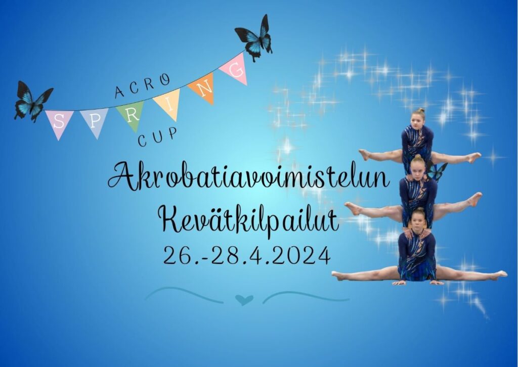 Akroteam Lohja järjestää pe 26.4. – su 28.4.2024 akrobatiavoimistelun kilpailut Kisakalliossa Susi Training Centerissä.