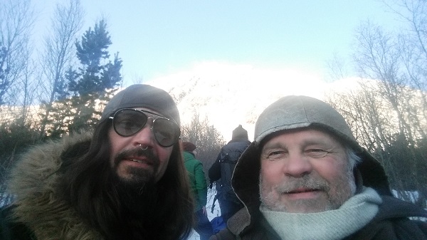 Tomi Joutsen ja Pekka Kainulainen ”Wrong Direction”- musiikkivideon kuvausmatkalla Pohjois-Norjassa talvella 2018.