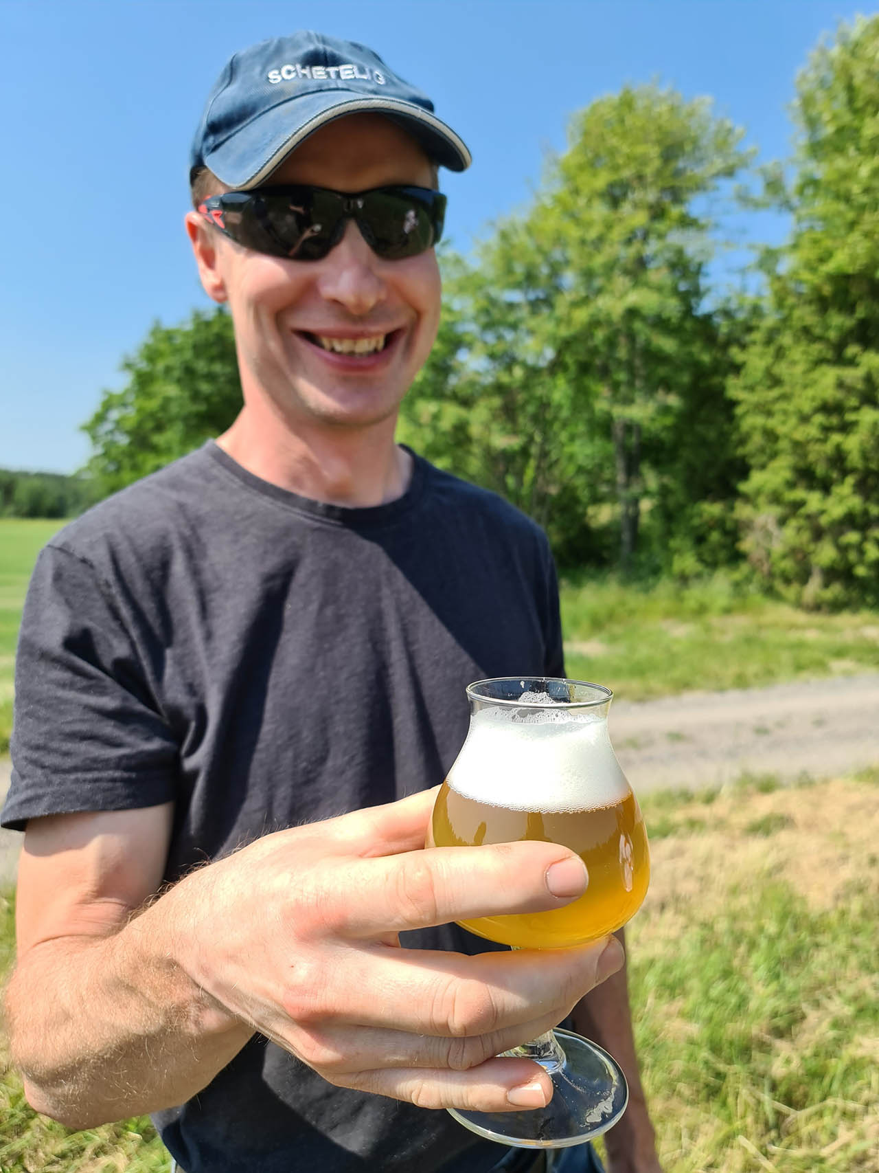 Nikun tilan isäntä Jarno Siitonen kädessään oman pellon ohrasta tehty Järvi Pils.