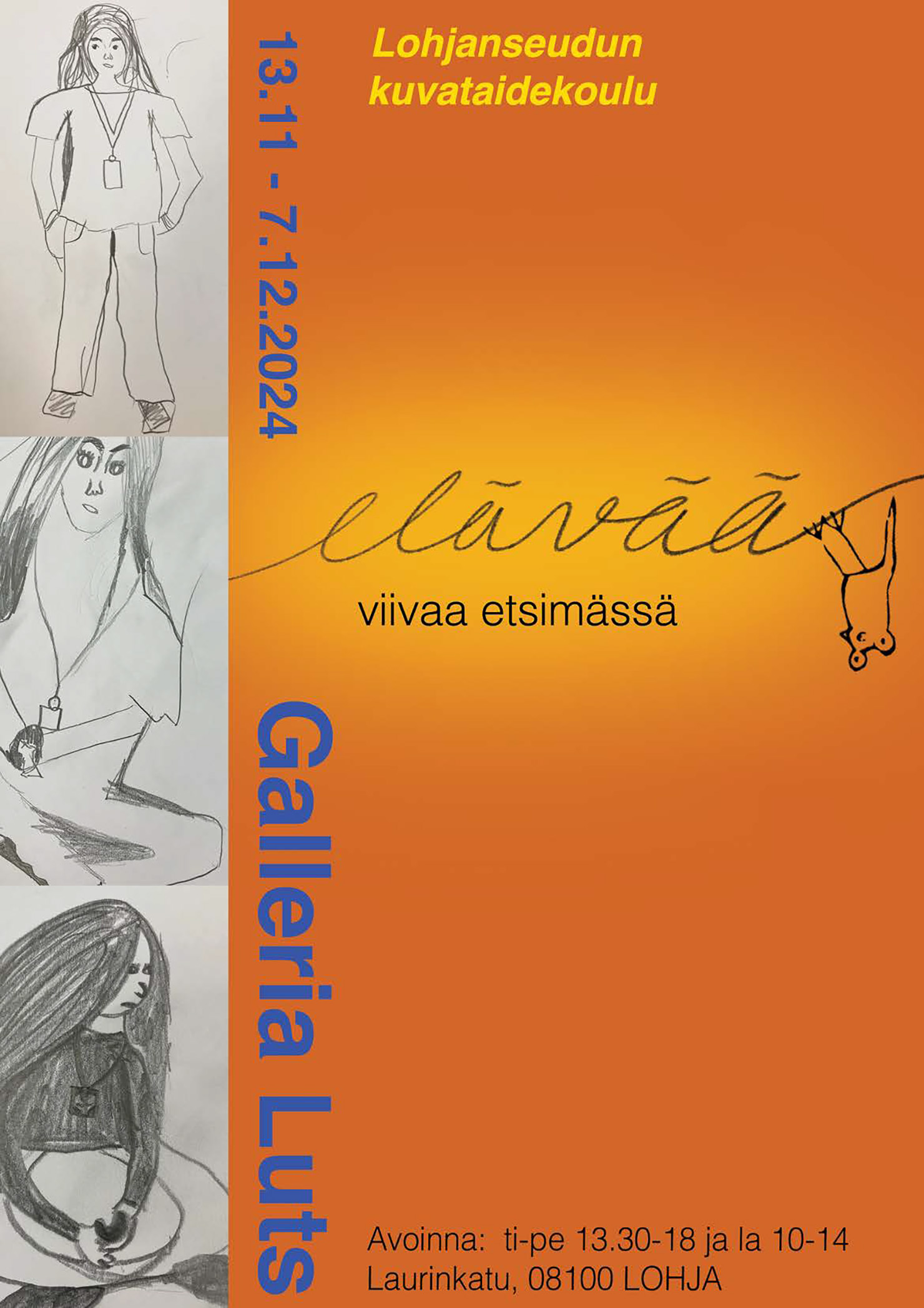 Lohjan Pääkirjaston Pähkinäsalissa on nähtävillä kuuden kuvataiteen opiskelijan töitä 10.5. saakka. Lopputyö on osa taiteen perusopetuksen laajan oppimäärän syventäviä opintoja, joihin siirrytään noin 15-vuotiaana. Taiteen perusopetuksen laajan oppimäärän opetussuunnitelman perusteissa määritellään seuraavasti: ”Syventävien opintojen tarkoituksena on opintomahdollisuuksien laajentaminen tai painottaminen. Taiteenalan laajan oppimäärän syventäviin opintoihin sisältyy lopputyö” Lisäksi määritellään: ”Lopputyö on osa syventäviä opintoja. Se tehdään pääsääntöisesti yhden lukuvuoden aikana. Lopputyön voi aloittaa 16-vuotiaana sitten, kun takana on vähintään yksi vuosi kyseisen taiteenalan ateljee-opintoja.”