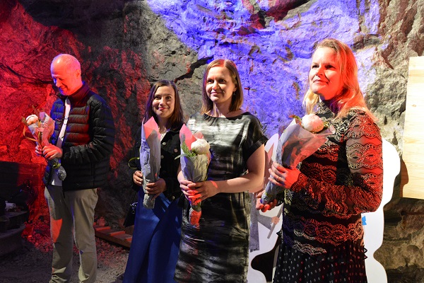 Elämyskaivoksen uudet taideteokset ovat Alexander Reichsteinin (vas), Anni Hanénin, Johanna Pitkäsen ja Jenni Tieahon käsialaa.