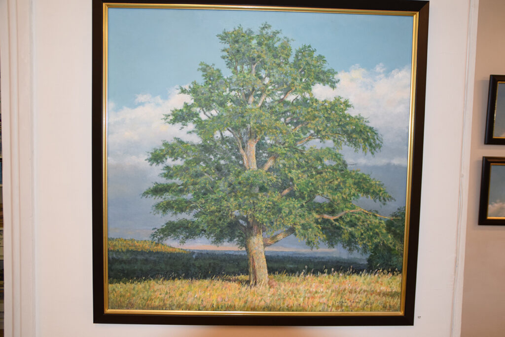 Mutta L-kirjaimen muotoinen valkoiseksi maalattu tila näyttäisi soveltuvan erinomaisesti myös galleriaksi. Esillä on 46 teosta, joista useimmat Salmi on maalannut viimeisten parin vuoden aikana. Suurin osa öljyvärimaalauksia, pienemmät akvarelli-pastellitöitä.