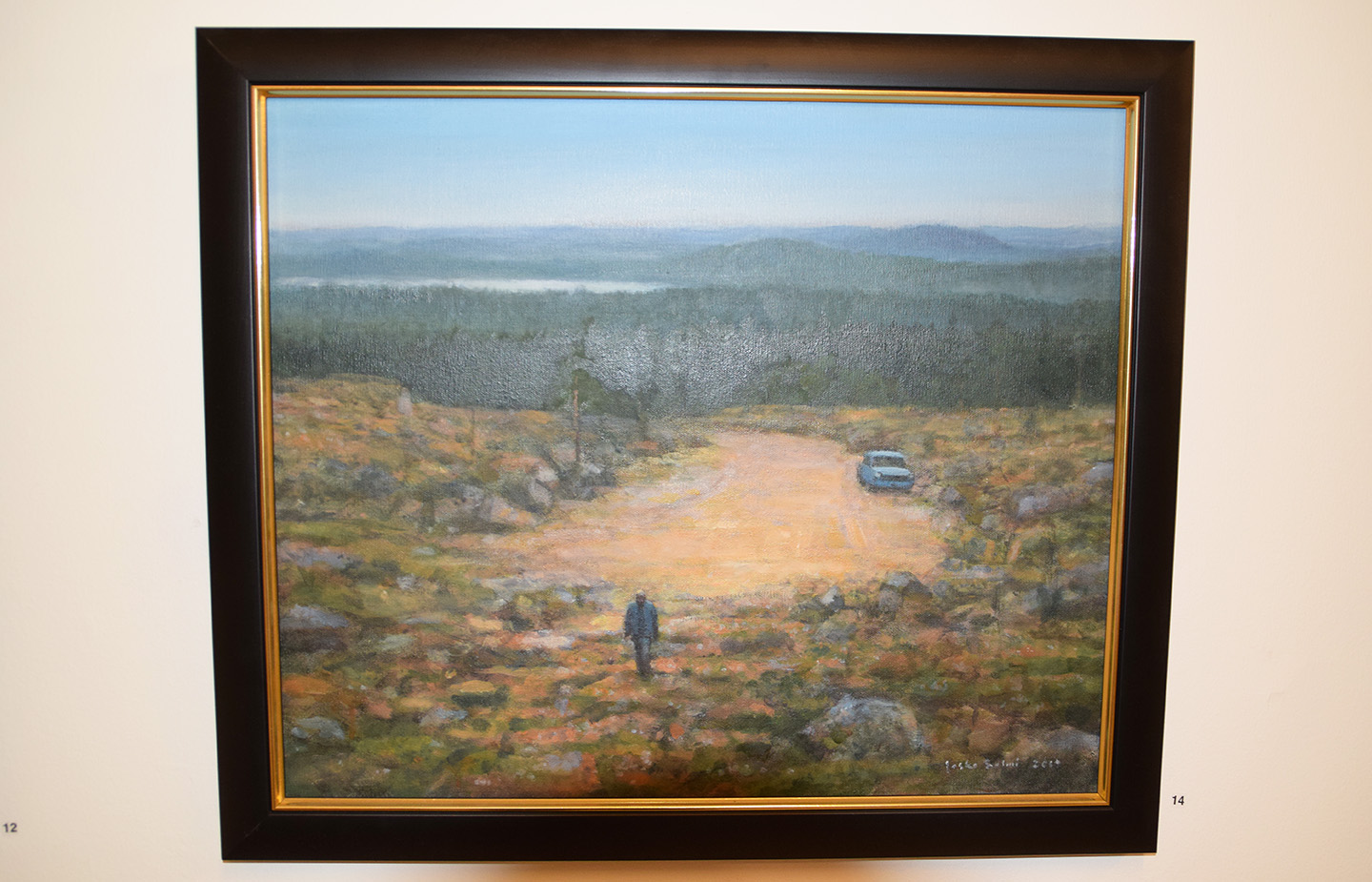 Lohjanjärvi on antanut sysäyksen useaan järviaiheiseen teokseen. Poikkeuksen tekee näyttelyn suurikokoisin maalaus Kuunteluoppilas, jossa mieshahmo seisoo rantapaadella ja katsoo vuolaana virtaavaa jokea.