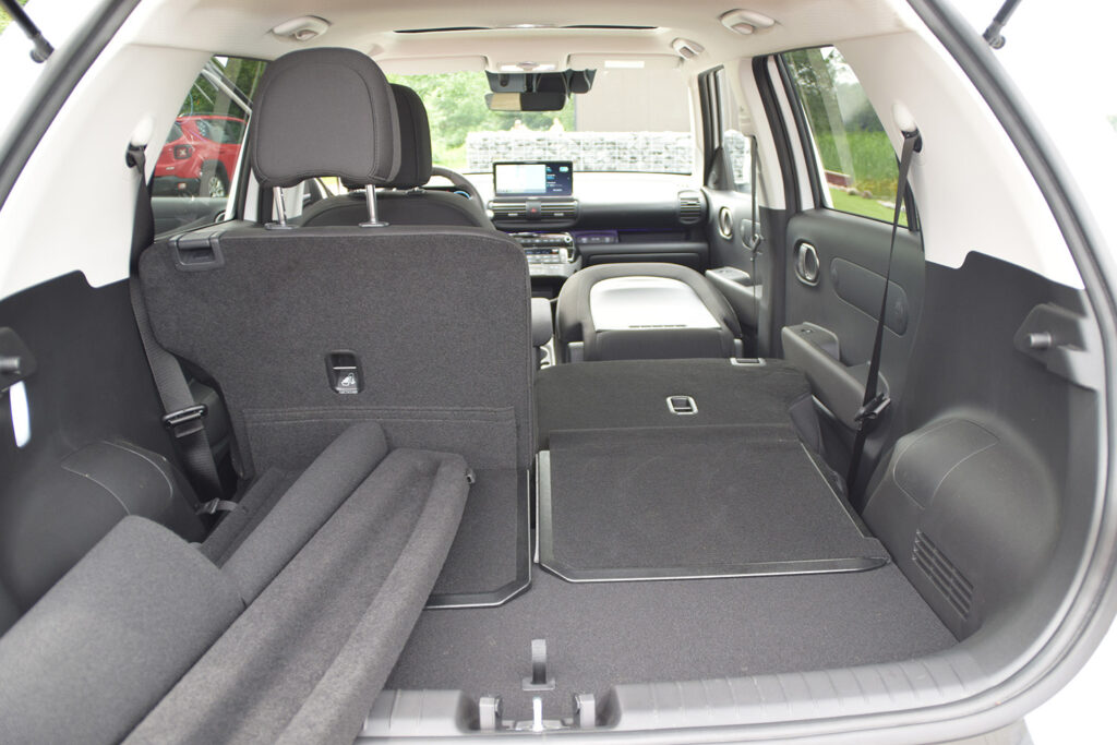 Insterin muotoilussa yhdistyvät persoonallisuus ja käytännöllisyys. Pyöreät LED-päiväajovalot ja pikseligrafiikalla varustetut vilkut ja takavalot antavat autolle tunnistettavan ja modernin ilmeen, kun taas voimakas puskuri korostaa sen SUV-tyylistä olemusta. Sisätilat ovat yllättävän tilavat auton ulkomittoihin nähden, tarjoten monipuolisuutta ja joustavuutta arjen tarpeisiin. Esimerkiksi kaikki istuimet, myös kuljettajan istuin, voidaan taittaa alas täysin tasaiseksi lattiaksi, mikä mahdollistaa jopa autossa yöpymisen tai suurikokoisten esineiden kuljetuksen. Tavaratila joustaa takaistuimia liikuttelemalla 238–351 litran välillä, mikä on erinomaista tämän kokoluokan autolle. Lisäksi Inster tarjoaa edistyksellisiä teknologisia ominaisuuksia, kuten Hyundai Bluelink -järjestelmän, joka mahdollistaa auton etähallinnan puhelinsovelluksella, sekä laajan valikoiman kuljettajaa avustavia turvallisuusjärjestelmiä, kuten törmäyksenvälttämisavustimen.