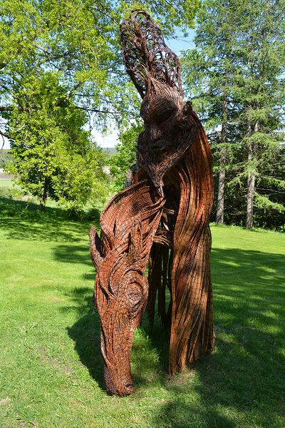 –Jenni kyseli, kiinnostaisiko meitä ympäristötaide. Pihalla ei ennen ole ollutkaan näyttelyä, mutta nyt etu- ja takapihalla on yhteensä seitsemän Jennin työtä, Juvonen-Eskola sanoo.
