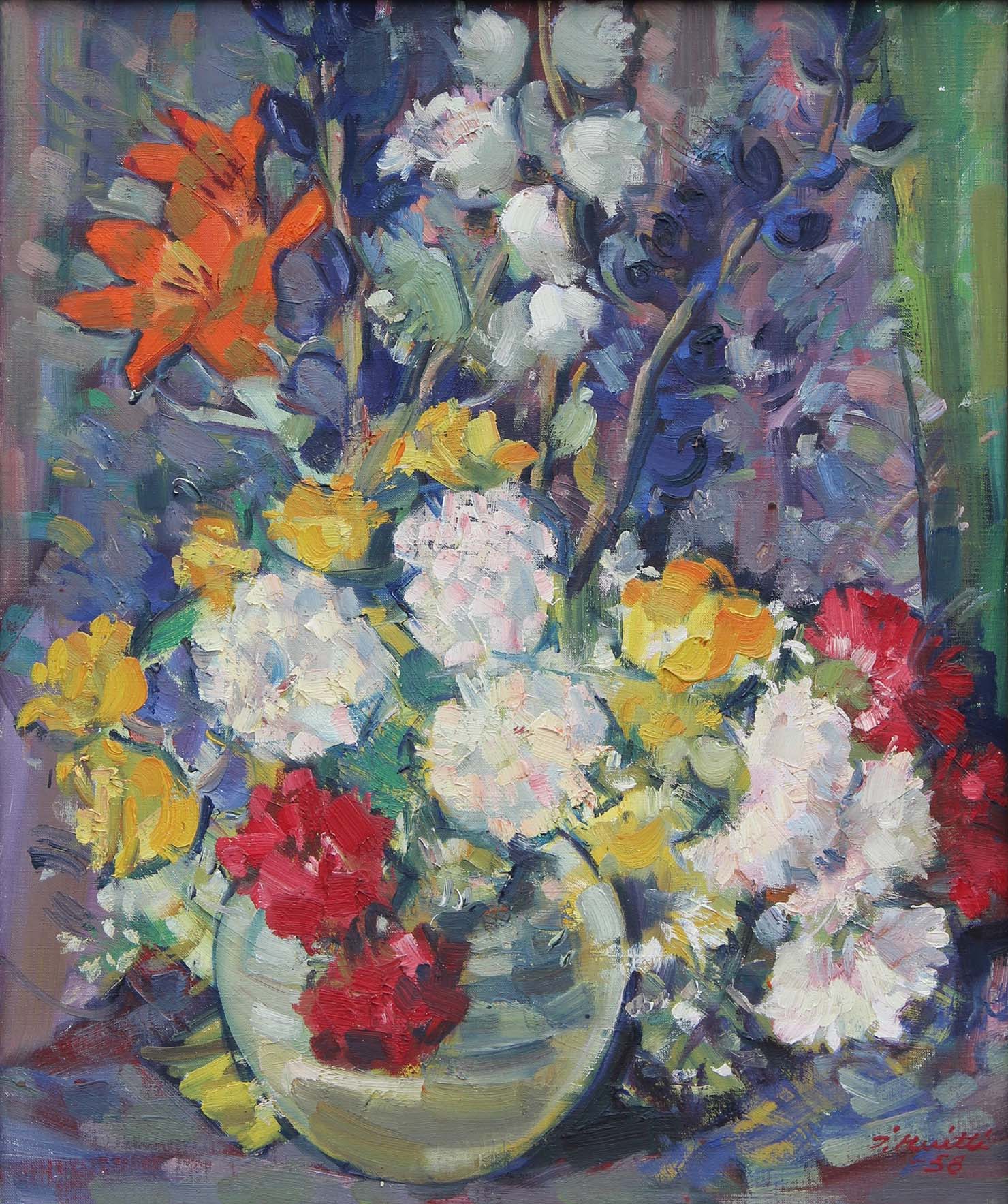 Ilmari Huitti: Kukka-asetelma, 1958. Taidemaalari Ilmari Huitin Säätiön kokoelmat. Kuva Margit Lumia.