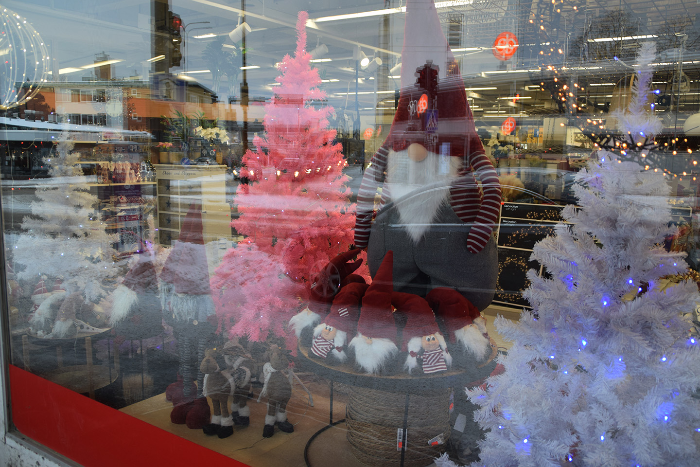 Latvalassa kaikki jouluikkunan hahmot ja esineet ovat myynnissä muovisista joulukuusista lähtien.