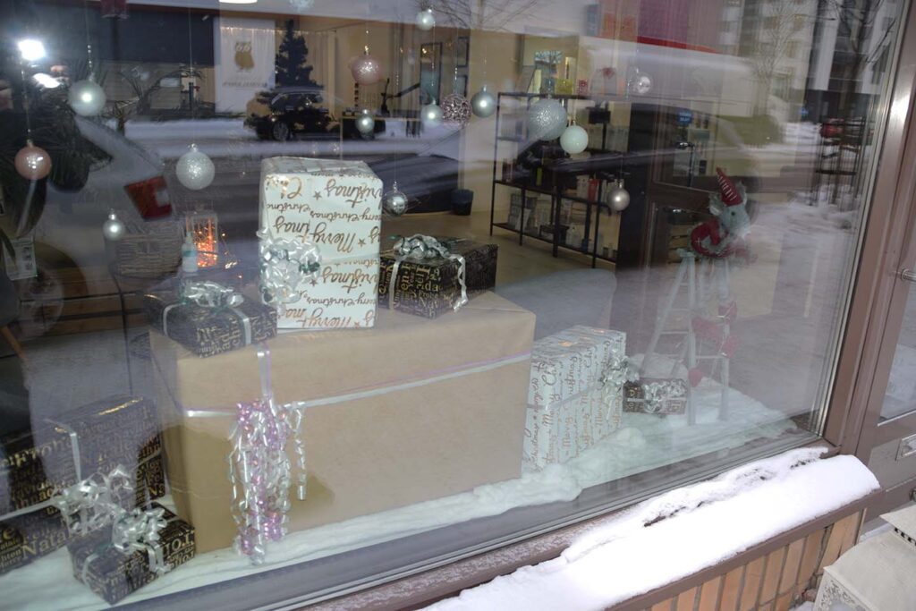 – Joulukadun avajaisiin laaditaan aina edellisestä joulusta muuttuva ikkuna-asetelma, omistaja Tiia Mäenranta sanoo.