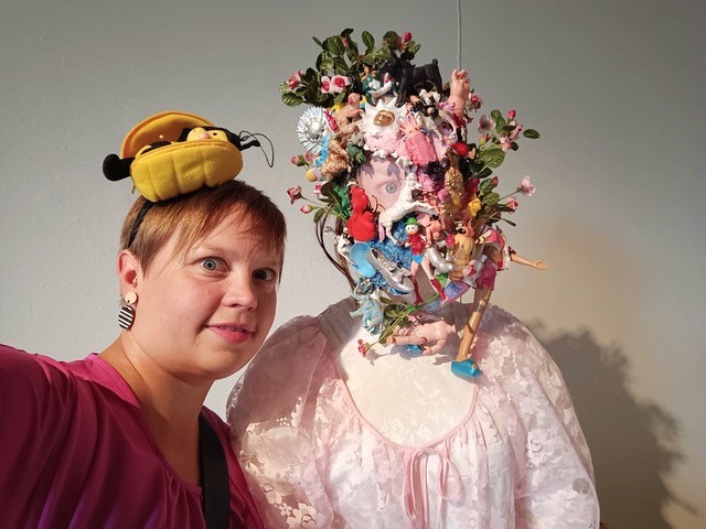 – Olen Mammu Rauhala kuvataiteilija ja teatterintekijä Lohjalta. Koulutukseltani olen teatteri-ilmaisun ohjaaja ja toimin taiteen ja kulttuurin kentällä poikkitaiteellisesti ja monialaisesti. Teen sekatekniikka veistoksia ja naamioita, maalaan ja esiinnyn. Toisinaan luonnehdin itseäni myös performanssitaiteilijaksi. Taidenaamioissa eri ammatti-identiteettini risteävät keskenään.