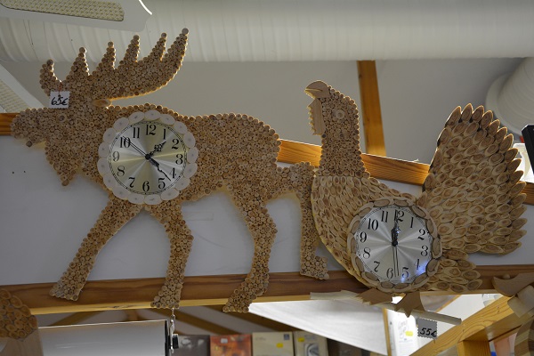 Esan Kalusteesta löytyy erikoisempiakin sisustuselementtejä, kuten nämä katajaiset kellot.