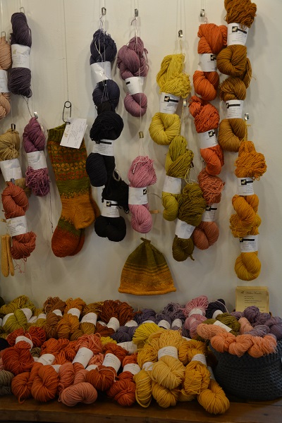 Päivi Hanhimäen kasveilla värjäämiä lankoja.