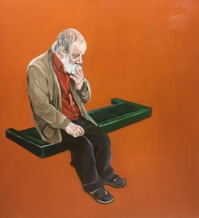–Olen ollut aiemmin töissä a-klinikalla. Kohtasin siellä paljon ongelmallisia ihmisiä, joilla oli tarina. Taiteen avulla on hidasta ottaa kantaa, mutta koetan. Nämä ovat maalauksia lajitovereistani, joilla ei ole ollut ihan yhtä hyvä tuuri kuin itselläni.