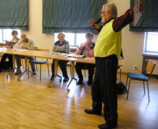 Liikunnallista luennointia. Antti Honkonen kertoi Harjulassa Kävelypässien toiminnasta ja IKINÄ-testistä.