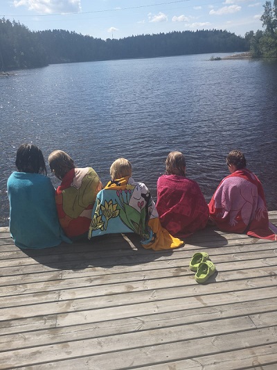 Leiriohjelmaa kuuluu totta kai perinteisesti mm. saunomista ja uimista.