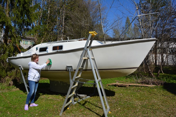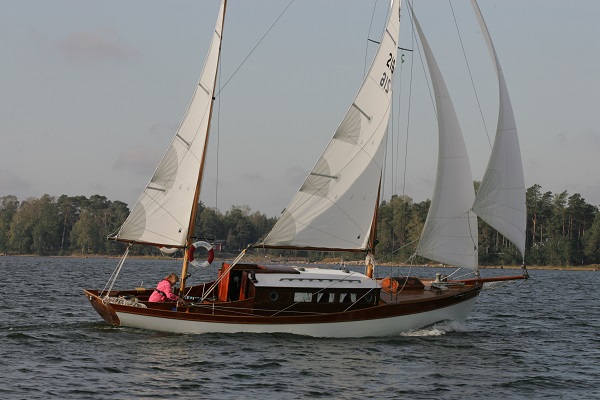 S/y Minni odottaa vesille laskua. -Se on uljas, pieni retkipursi ja kesäkotimme, jossa on neljä punkkaa, keitin ja wc, Merihelena Leskinen kertoo.