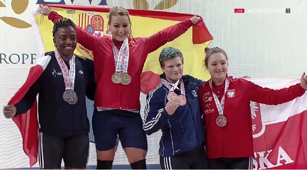 Ranskan voimanainen työnsi vielä 126 ja myös 131 kg, Maailmantähti ja Euroopan mestari Espanjan Valentin työnsi 135kg.