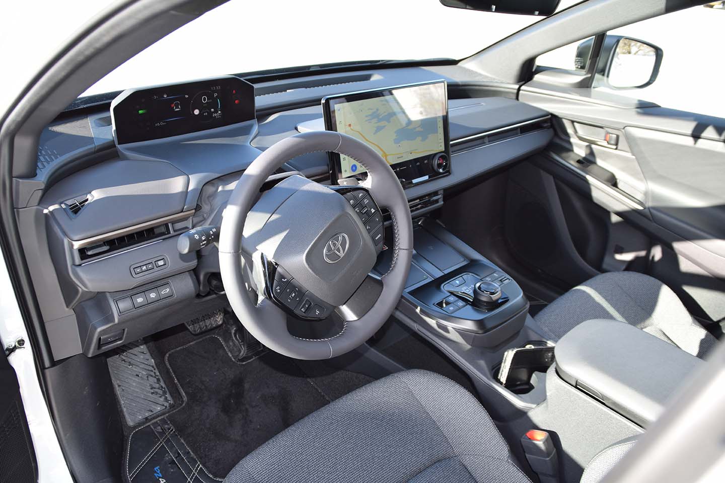 Uudistettu Toyota bZ4X on uudistunut myös sisältä. Sen keskikonsoli ja ohjauspaneeli ovat saaneet uuden mallin ja samalla näytöt ovat suurentuneet ja taustalla toimiva ohjelmisto on myös päivitetty.