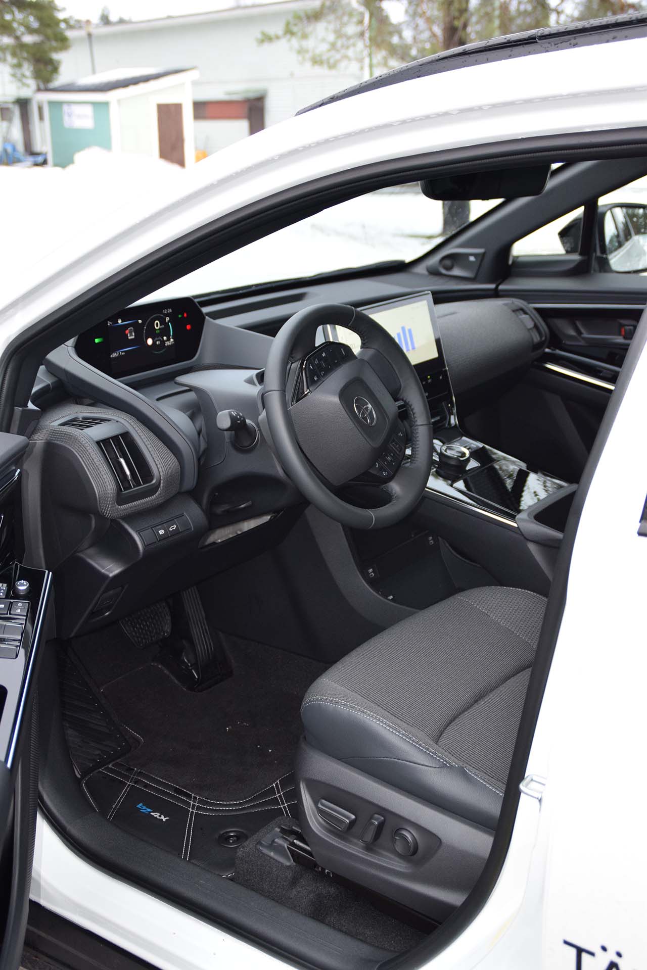 Toyota bZ4X on Toyotan täyssähköauto, jonka alkaen 204 hv ja yksi moottori. Neliveto kahdella moottorilla eli koeajoauto oli teholtaan 218 hv, ja sen hinta on alkaen 53820 €. Koeajo autossa oli teknisinä lisäominaisuuksina mm. pysäköintitilanteiden törmäyksenesto (PKSB), 18 tuuman renkaat, 9 JBL-kauitinta sisällä autossa tuottamassa musiikkia, kuljettajan vireystilan valvontajärjestelmä, kuolleenkulman varoitin sivupeilissä, 360 asteen kamerajärjestelmä, 12,3 tuuman multimedialaite – kaikki uusi tekniikka oli kuitenkin hyvin löydettävissä, ja mikäli taustalla on aiempia Toyota-autoja, on kuskin hallintalaitteet nopeasti löydetty ja tutustuttu.