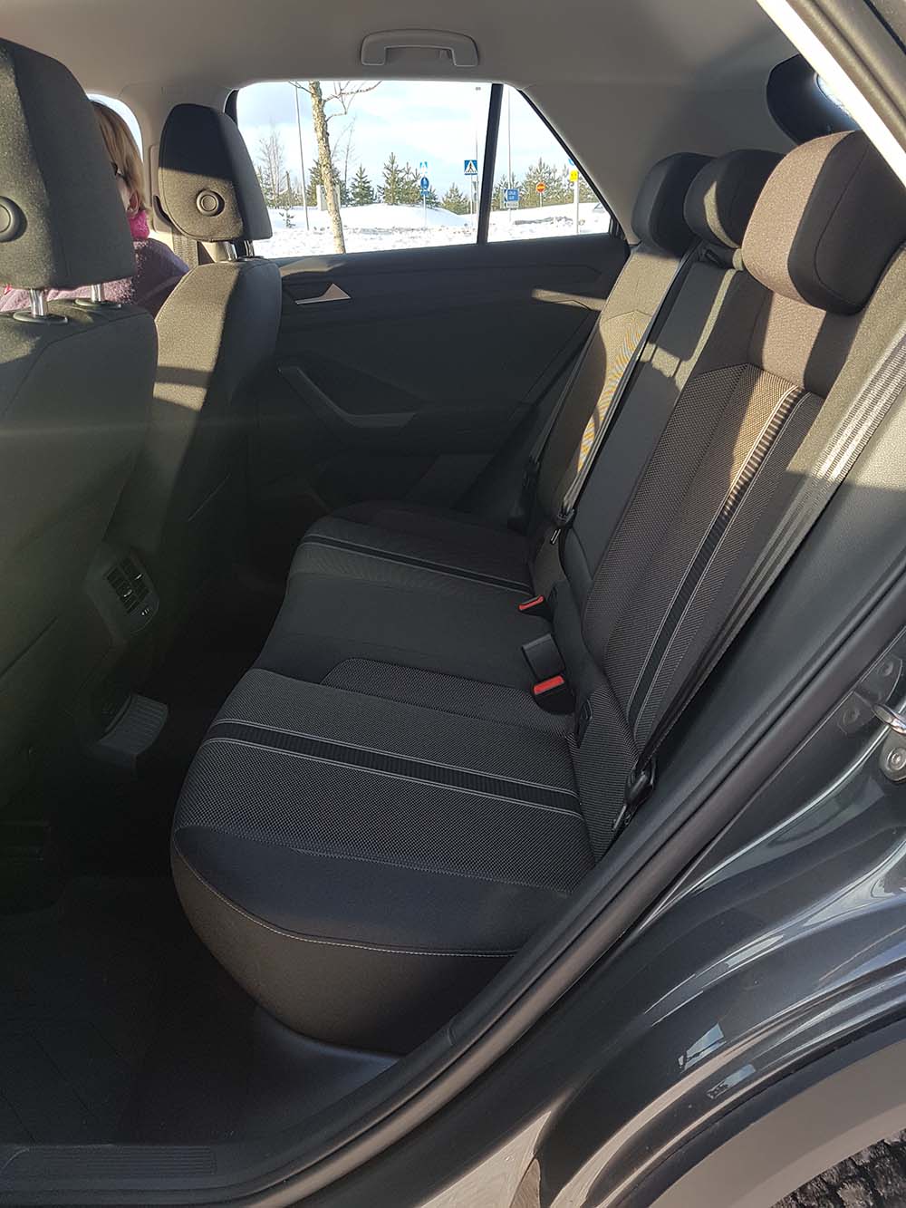 Ensivaikutelma kuljettajalle T-Rocista on, että auto on pehmeä ja helppo ajaa. Auton jousitus ottaa tiestä isotkin töyssyt hyvin vastaan eikä moottoritien tai maantien äänet tule autoon sisälle saakka. Auton takapenkille mahtuu hyvin aikuisetkin matkaajat, vaikka itse autoon pääsy saattaa tuntua normaalia ahtaammalta (puhuu mies, joka 99,99% istuu aina edessä). Myös oman älypuhelin liittäminen autoon tapahtuu helposti joko bluetooth tai USB-yhteydellä. T-Rocin usb-liitännät ovat hyvin näkyvillä ja saatavilla heti ilmastoinnin alapuolella. Digitaalimittaristo on erittäin selkeälukuinen ja tyylikäs kokonaisuus. Myös mittariston räätälöitävyys miellyttää: eri kuskit ja erilaiset fiilikset ovat riittävä syy muokata näkymiä mieleisiksi. Välillä kiinnostaa kierrosluku ja välillä kulutus tai navigointi.