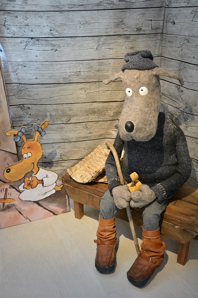 Näyttelyssä seikkailevat Mauri Kunnaksen kirjoista tutut hahmot.