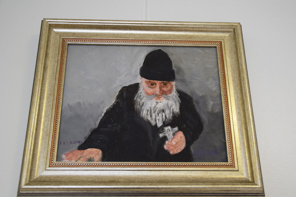 – Ei, siinä on oma isoäitini, jonka olen maalannut valokuvan pohjalta. Kunnianarvoisa nainen kyllä, Koskinen myöntää.