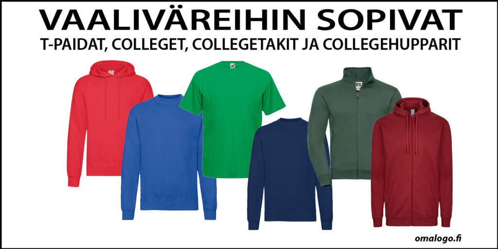 Omalogo Oy tarjoaa laadukkaita vaalivaatteita, jotka on räätälöity juuri sinun tarpeidesi mukaan. Värit ja design voidaan valita siten, että ne sopivat täydellisesti kampanjasi tyyliin ja viestintään. Muista, että vaalivaatteet eivät ole vain asuste – ne ovat osa brändiäsi.