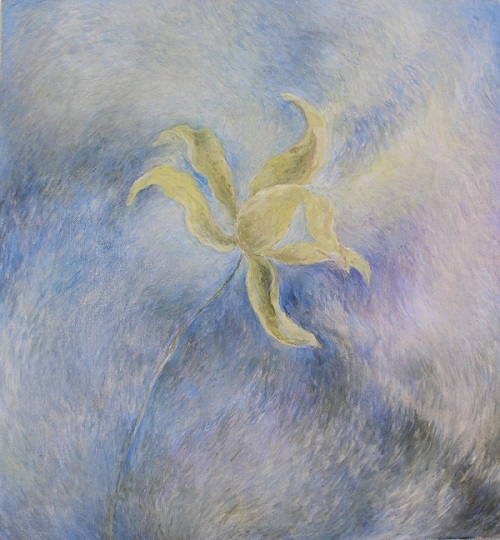 –Työhuoneellani on pöytä, jolle olen asetellut kuivattuja kukkia, tulppaaneja, ruusuja ja liljoja. Joskus ikkunasta lankeaa pöydälle kaunis valo ja yhtäkkiä jokin kukista ikään kuin syttyy elämään. Se alkaa tavoitella valoa kohti, valo muotoilee kukan ja sen ympäristön, luo siihen varjoja ja syvyyttä. Tämä on kuin maaginen hetki, jolloin tulevan maalaukseni aihe näyttäytyy minulle.