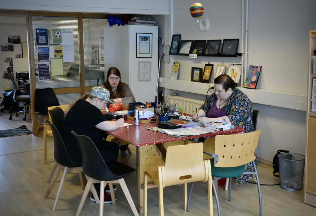 -Syitä tänne tulemiseen on varmasti yhtä paljon kuin kävijöitäkin. Joku saattaa tulla tänne päivärytmin takia, toinen tekemisen takia ja joku saattaa etsiä seuraa tai kaivata uutta tekemistä, Tuomola lisää.