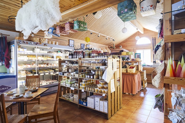 –Meillä on luhtiaitta, jossa mahtuu kahvittelemaan 30 henkeä. Siellä voi pitää vaikka juhlat. Kun tänne tulee bussilastillinen ihmisiä, puolet voi kahvitella sillä aikaa, kun muut tekevät ostoksia. Joulun aikaan luhtiaitassa voi pitää tunnelmallisen glögihetken.