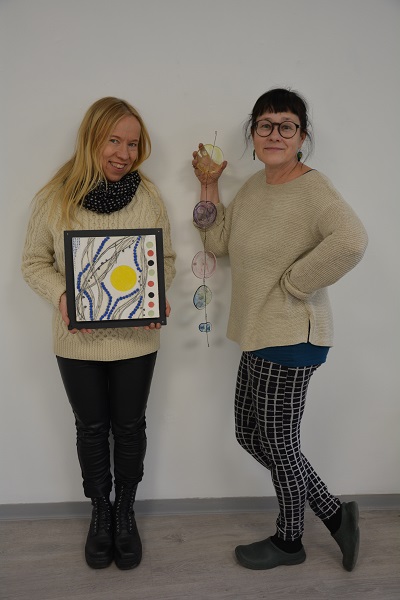 Teija Oikkonen (vas) ja Viola Karvinen haluavat tuoda näyttelyllään väriä ja iloa ihmisille.