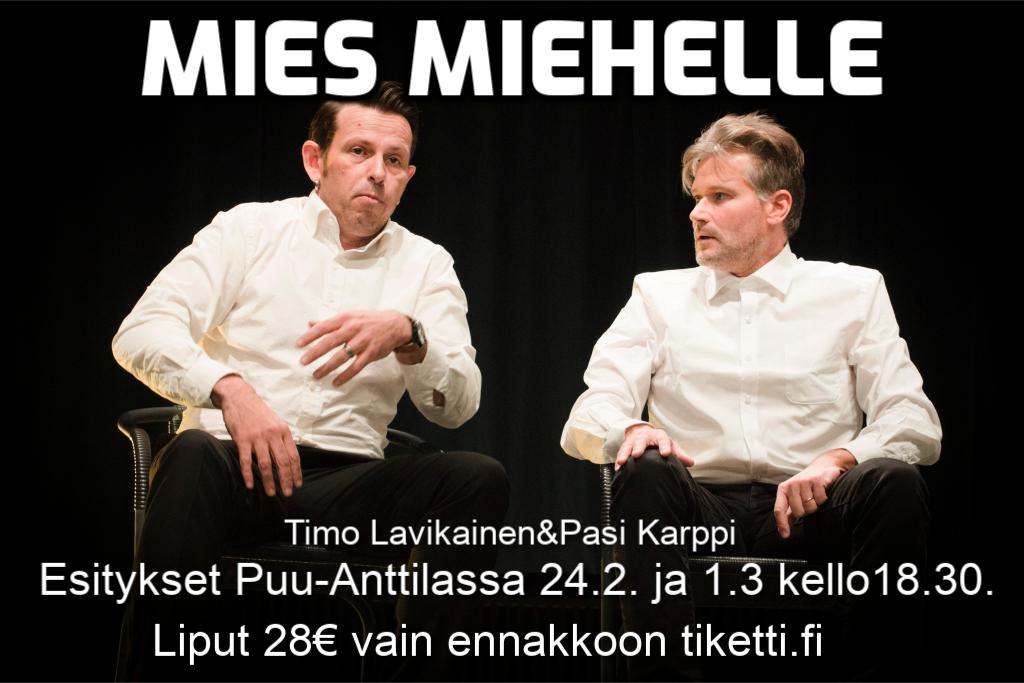 Timo Lavikainen ja Pasi Karppi tuovat suomeksi ensimmäistä kertaa näyttämölle 80-luvun kulttiklassikon. Mies miehelle on esittäjien kunnianosoitus heidän elämäänsä vaikuttaneille lapsuuden sankareille.