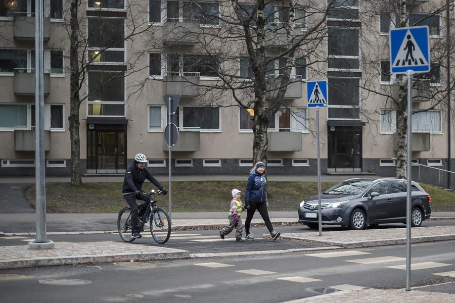 Lähes kahdeksan kymmenestä pitää edes jokseenkin hyväksyttävänä 30 km/h nopeusrajoitusta alueilla, joissa kävellään ja pyöräillään paljon. Kuva: Nina Mönkkönen/Liikenneturva.