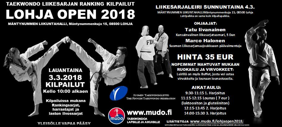 MUDO ry ja Suomen Taekwondoliitto järjestävät vuoden 2018 ensimmäisen Taekwondon liikesarjojen ranking-kilpailun. Tämä on jo neljäs kerta peräkanaa, kun saamme kilpailut Lohjalle järjestettäväksi. Kaikkina neljänä kertana minulla on ollut kunnia toimia kilpailujen johtajana. ”, kertoo Vesa Suomalainen, joka toimii Mudo ry:n puheenjohtajana.