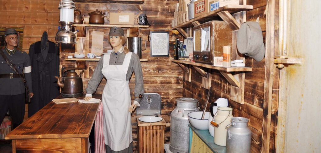 Museo on sekä kokoelma harvinaisia sota-ajan tavaroita, mutta myös sota-ajan mukaan rakennettuja osastoja kuten kanttiini, korsu, juoksuhauta, kenttäsairaala, pommisuoja yms. Kokemuksen täydentää autenttiset sodanäänet ja esineisiin liittyvät tarinat.