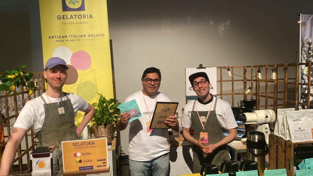 – Ivan ja Cafetoria teki hattutempun ja voitti peräti 3 kilpailua ja yhdessä hän tuli toiseksi. Kaikkiaan Cafetoria sai viisi palkintoa yhdelle päivälle: voitot vuoden Limited edition suodatinkahvi, vuoden kofeiiniton suodatinkahvi sekä vuoden jäätelö 2026. Kakkossija vuoden gelato 2026 ja kolmas sija vuodes espresso 2026. Olemme hyvin ylpeitä ja onnellisia Ivanin saavutuksista, kertoo Mia Nikander Cafetoriasta.