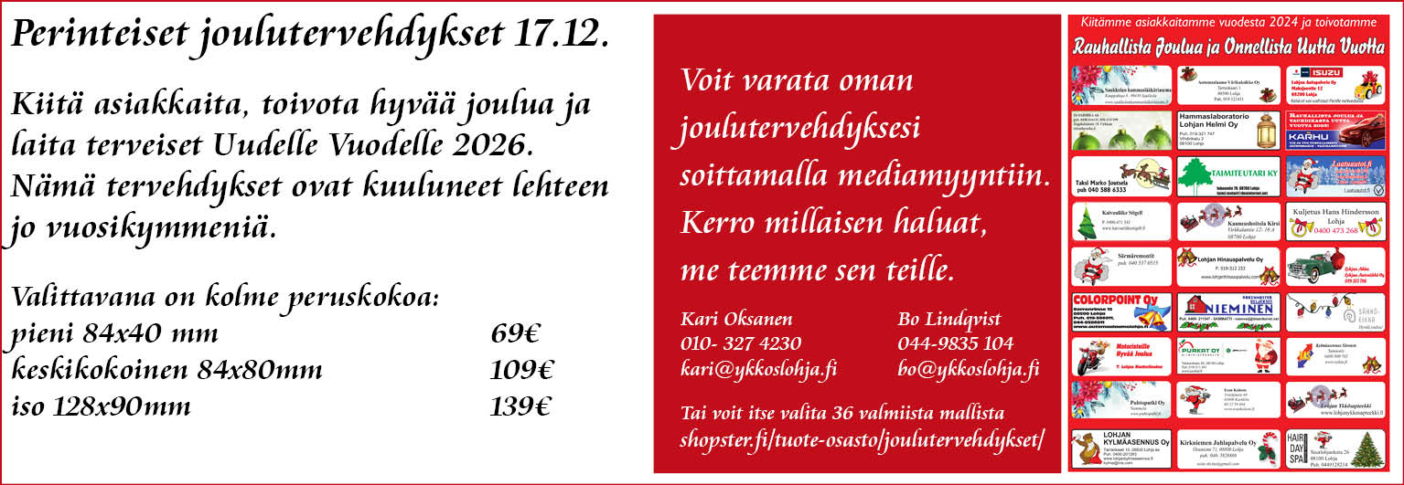 - Hyödynnä monikanavaisuutta kustannustehokkaasti: Yhdistä printtimainonta paikallisiin digitaalisiin nostoihin (esimerkiksi Facebook), jotta tavoitat eri-ikäiset kuluttajat eri alustoilla. Tämän saat Ykkös-Lohjasta pakettina
