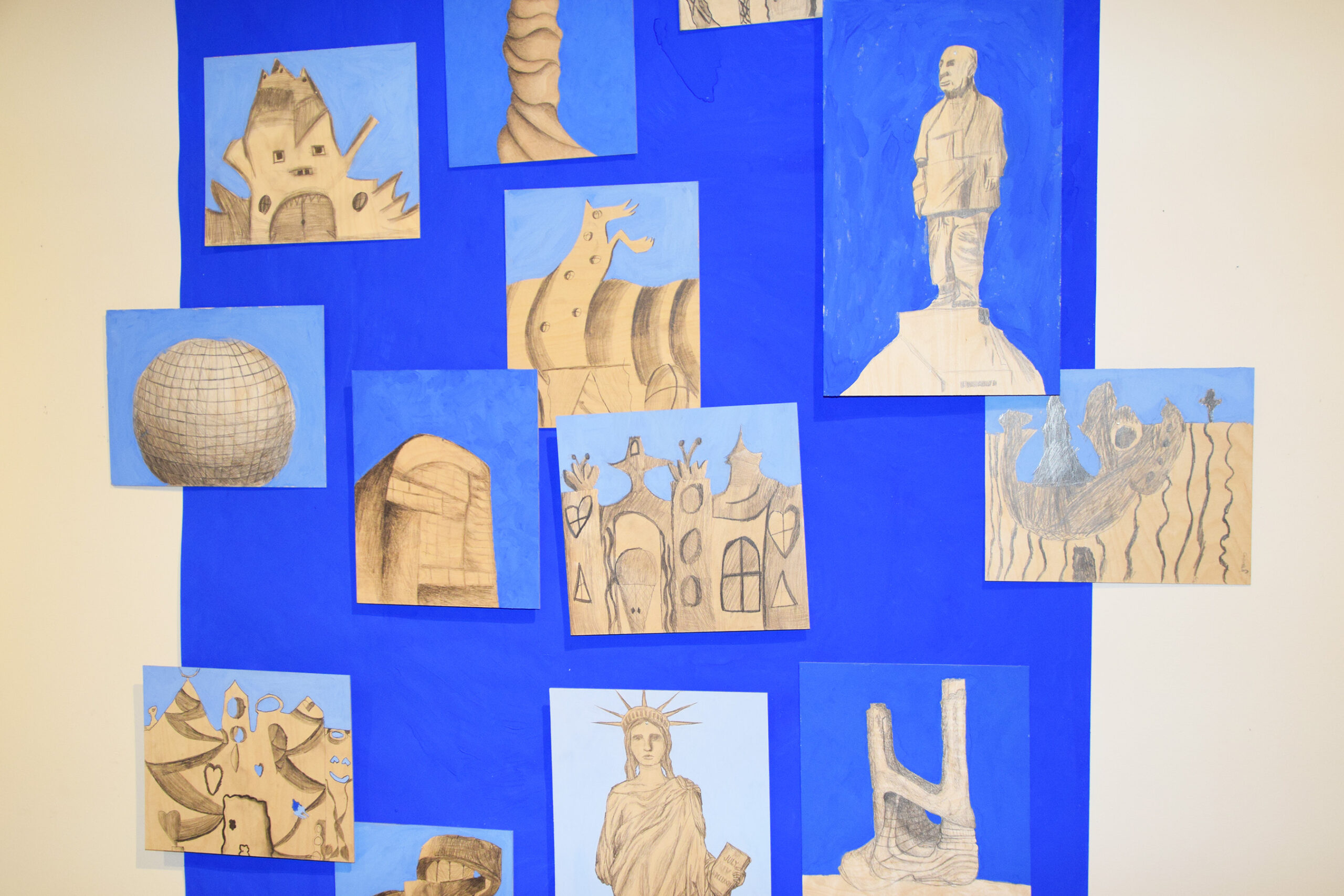 Vuosinäyttelin teokset esittelevät kuvataidekoulussa käytettäviä monipuolisia tekniikoita ja materiaaleja. Rakennustaiteen tuottamia tuntemuksia on puntaroitu WOW-arkkitehtuuria esittävien grafiittikynä-piirrosten parissa ja useammassa ryhmässä syksyllä tehty näyttelyvierailu taidemaalari Jaska Salmennäyttelyyn on inspiroinut tekemään oman version taidenäyttelyssä nähdystä valoa ikkunassa-teoksesta.