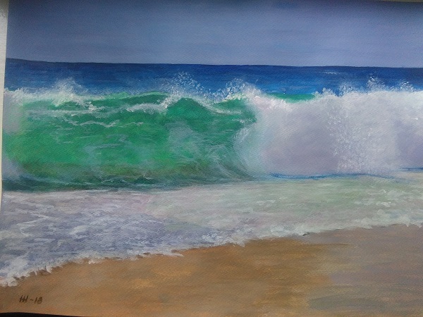 Murtuva aalto Helli Heleniuksen merimaalauksessa.