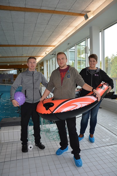 Syyslomalla voi esimerkiksi discoilla ja temppuilla Neidonkeitaassa. Nuorten uinteja järjestetään myös muuten pitkin syksyä. Nuoriso-ohjaajat Mia Lankinen ja Olavi Turpeinen sekä liikuntakoordinaattori Toni Ojala (vas) kannustavat kaikkia lapsia ja nuoria valikoimaan syyslomatarjonnasta itselle mieleistä lomaohjelmaa.