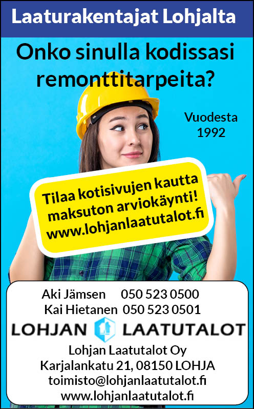 Meiltä Ykkös-Lohjasta saat tarvittaessa myös sen lehtimainoksen tekemisen. Kuten olemme tehneet mm. nämä mainokset: