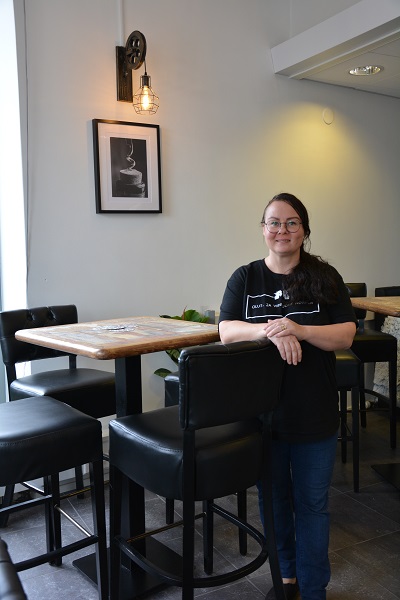 –Taustamusiikki soi hiljaa, joten täällä on helppo jutella ja nauttia. Olut- ja viinibaarissa on laaja valikoima tuotteita, joita myös vaihtelemme, vaikka perustuotteet säilyvätkin, hän sanoo.