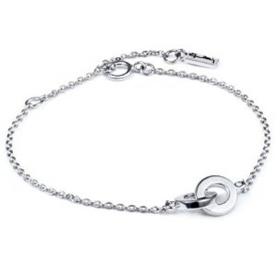 Kuvassa oleva hopeinen rannekoru on siro ja helposti arjessa mukana kulkeva koru, joka sopii monenlaiseen tyyliin. Se on kevyt ja moderni, ja sen kaksi toisiinsa kietoutuvaa rengasta tuovat ranteeseen kauniin, rauhallisen katseenvangitsijan.