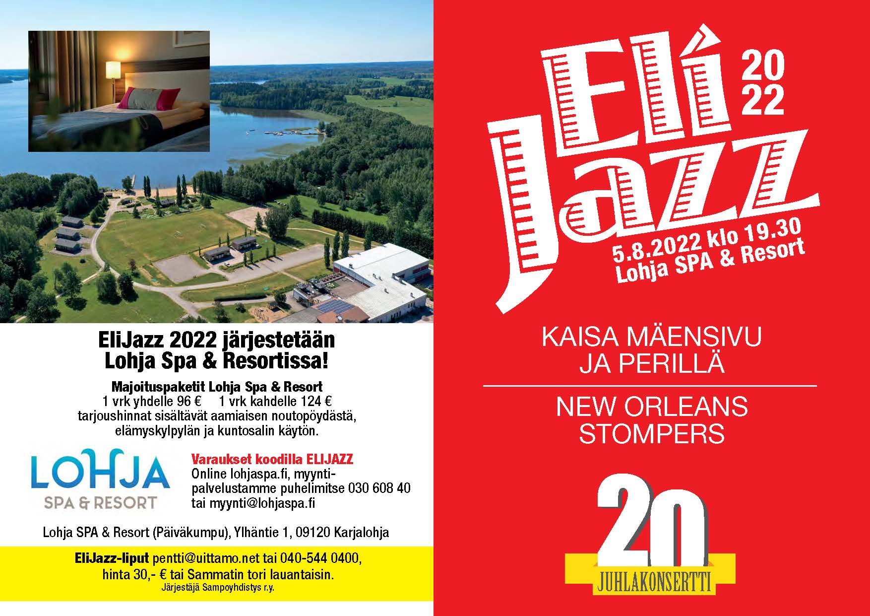 Lohja SPA & Resorttin ravintolapalvelut ovat käytössä, lisäksi kylpylähotellilla on edullinen majoitustarjous Elijazziin osallistuville. Varaukset suoraan hotellista koodilla ELIJAZZ tai p.040-5440 400.