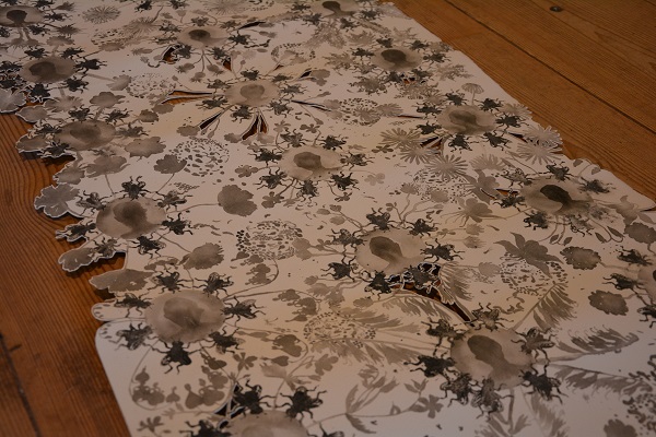 Kasvien lisäksi Kataran teoksissa on paljon hyönteisiä. Esimerkiksi kärpänen on saanut paljon tilaa hänen teoksistaan, vaikka yleensä se mielletään vähäpätöiseksi ja inhottavaksikin. Teokset ovat hyvin pikkutarkkoja, joten yksityiskohtia kannattaa pysähtyä katsomaan rauhassa. Näyttelyssä esillä ovat mm. introvertin takki ja ornamentti kukoistamisesta ja kukistumisesta. Pikkutarkka ornamentti on täynnä kasveja ja hyönteisiä. Introvertin takki puolestaan on ulkopuolelta harmaa, mutta sen sisällä riittää väriä ja kukkasia.