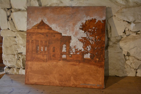 Hänen toisessa teoksessaan on vanha rakennus.