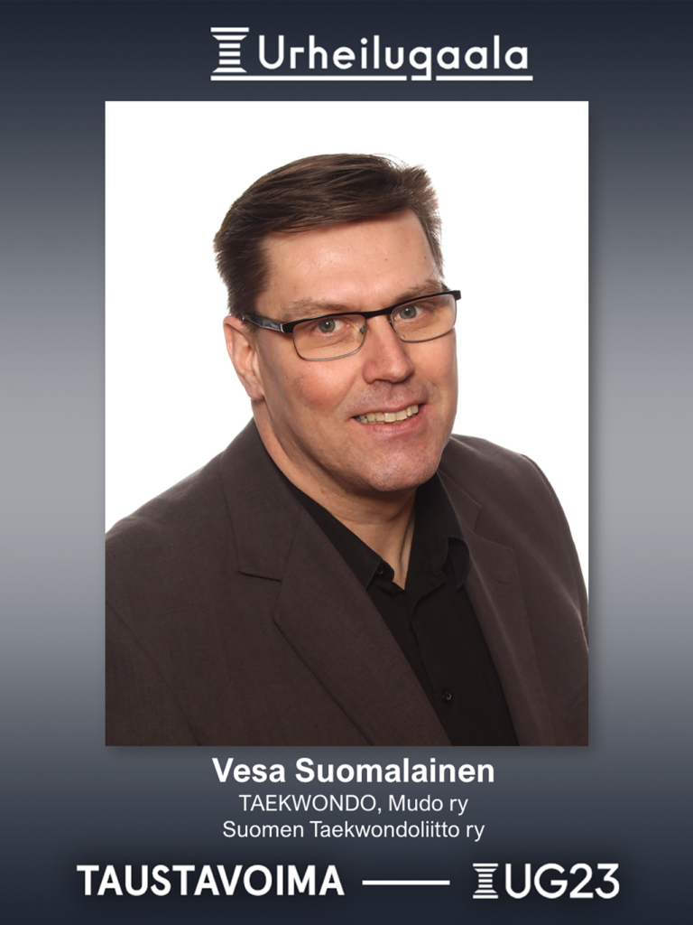 Vesa Suomalainen on nuoruudessaan ollut kova junioriurheilija ja päälajissaan uinnissa menestynyt kilpailijanakin 80-luvulta. Oman uintiuran loputtua Vesa jatkoi lähes 10 vuoden ajan lasten ja nuorten valmentajana, suorittaen myös seuraohjaajan ja SVUL-valmentajan tutkinnot. Usean lajin kautta Taekwondo on kuitenkin vienyt sydämen ja samalla myös perheen nuorisokin löysi tiensä saman harrastuksen pariin.