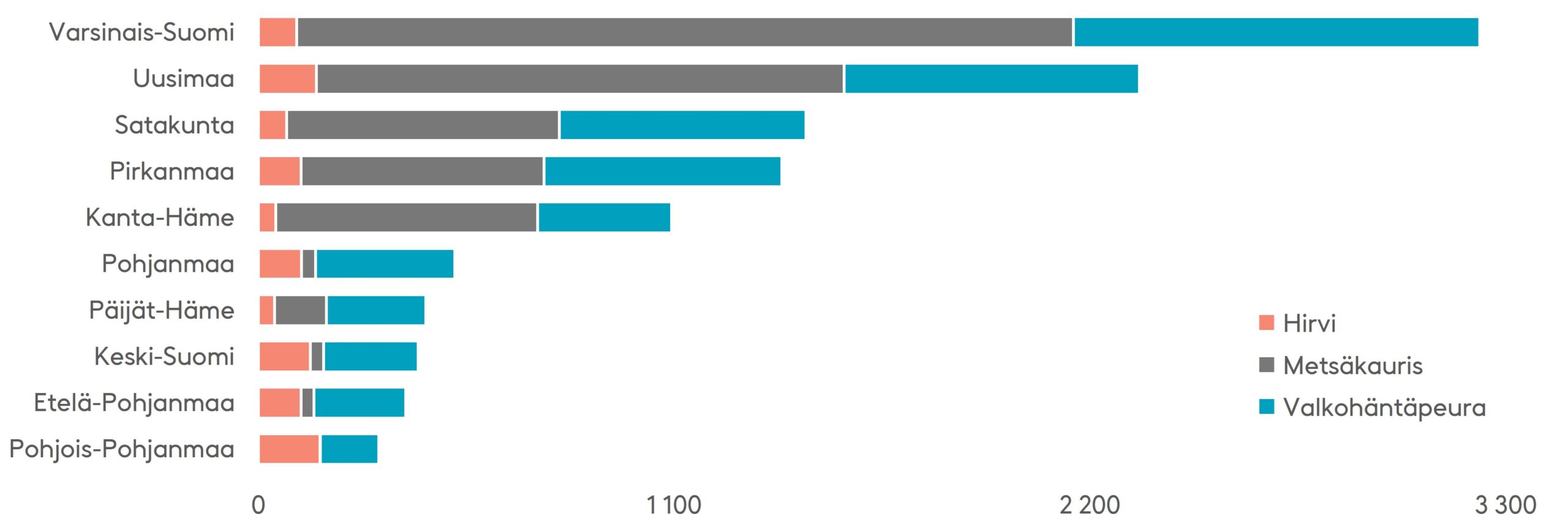 Tietolähteet: Tilastokeskus, Luonnonvarakeskus (Luke), Suomen riistakeskus, Liikenneturva, Fennia