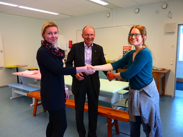 Länsi-Uudenmaan Osuuspankista Hanna Korhonen ja Jarmo Viitanen sekä Nuorisotyöpajalta Maria Junnonen.