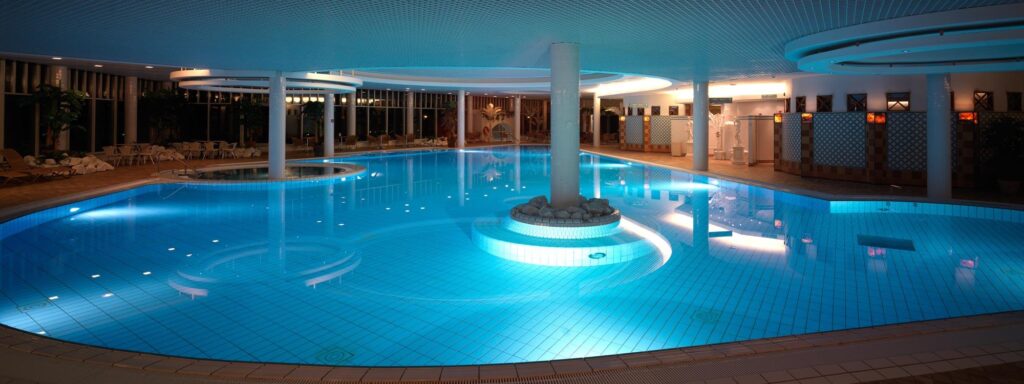Sisätiloista löytyy useita eri lämpöisiä altaita ja porealtaita, joissa lihakset rentoutuvat päivän ulkoilun jälkeen. Hierovat vesisuihkut ja poreet auttavat unohtamaan hartiajumit ja stressin hetkessä. Allasalueen arkkitehtuuri on suunniteltu tukemaan rauhoittumista, ja valaistus vaihtuu vuorokaudenajan mukaan luoden oikeanlaista tunnelmaa. Lapsille on omat alueensa, joissa saa leikkiä ja pärskiä vapaasti.