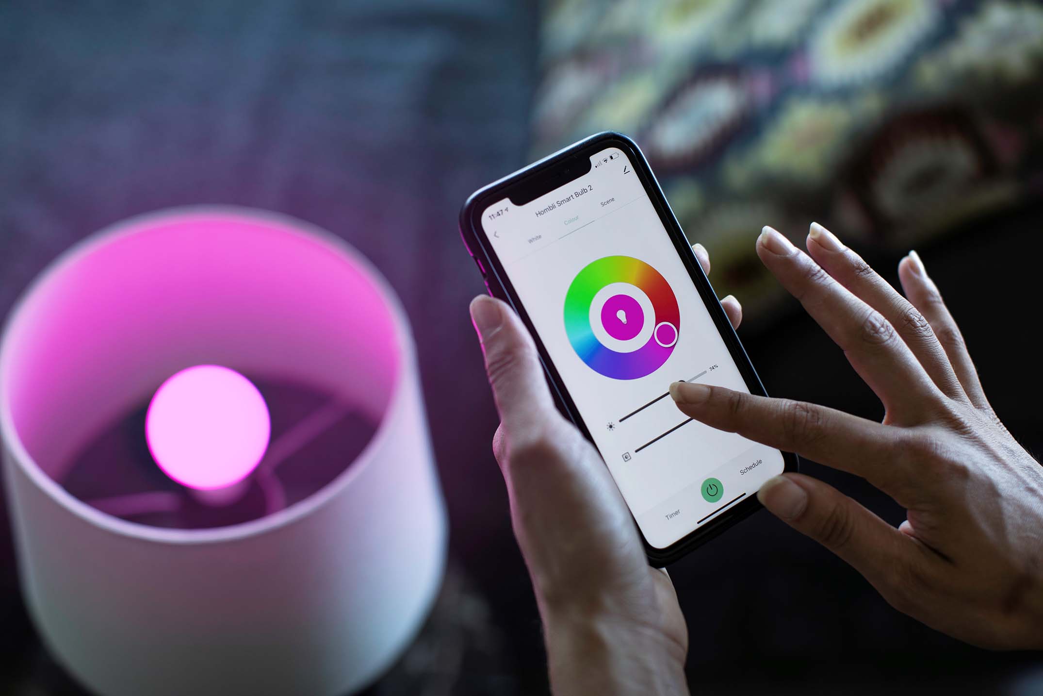 Tunnelman ja meiningin luominen elokuva-iltoihin, pelisessioihin tai joulujuhliin voidaan tehdä Hombli Smart Led Strip -valonauhan ja Smart RGB-lamppujen avulla. Smart Led Strip -nauhassa voit valita 16 miljoonasta väristä, jotta voit asettaa täydellisen tunnelman missä tahansa huoneessa. Smart RGB -lampun asentaminen on yhtä helppoa kuin mikä tahansa muun lampun. Liitä se kotisi Wi-Fi-verkkoon nopeasti ilmaisen Hombli-sovelluksen kautta. Voit käyttää sovellusta säätämään valot päälle tai pois päältä, säätämään väriä ja kirkkautta sekä ajastukseen. Voit jopa käyttää ääntäsi hallitaksesi älylamppua Amazon Alexan tai Google Assistantin/Homen kanssa.
